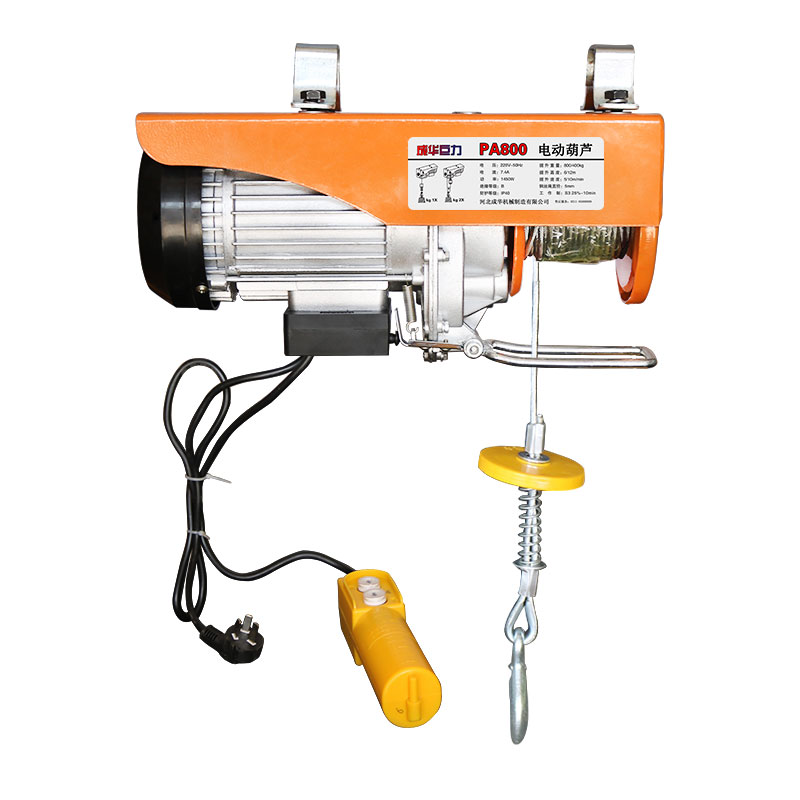 PA800微型電動葫蘆又叫家用微型電動葫蘆、民用電動葫蘆,其外形小巧便攜,安裝簡單方便,噪音小,家用電220V即可操作;搭配電動跑車實(shí)現(xiàn)工字鋼上的左右運(yùn)行;微型電動葫蘆有急停限位安全裝置,使用安全可靠。