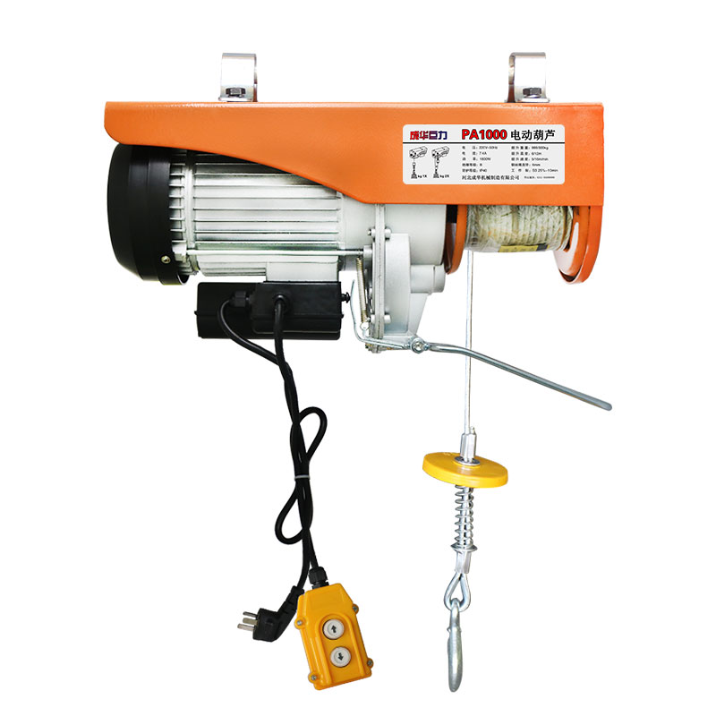 PA1000微型電動葫蘆又叫家用微型電動葫蘆、民用電動葫蘆,其外形小巧便攜,安裝簡單方便,噪音小,家用電220V即可操作;搭配電動跑車實現工字鋼上的左右運行;微型電動葫蘆有急停限位安全裝置,使用安全可靠。
